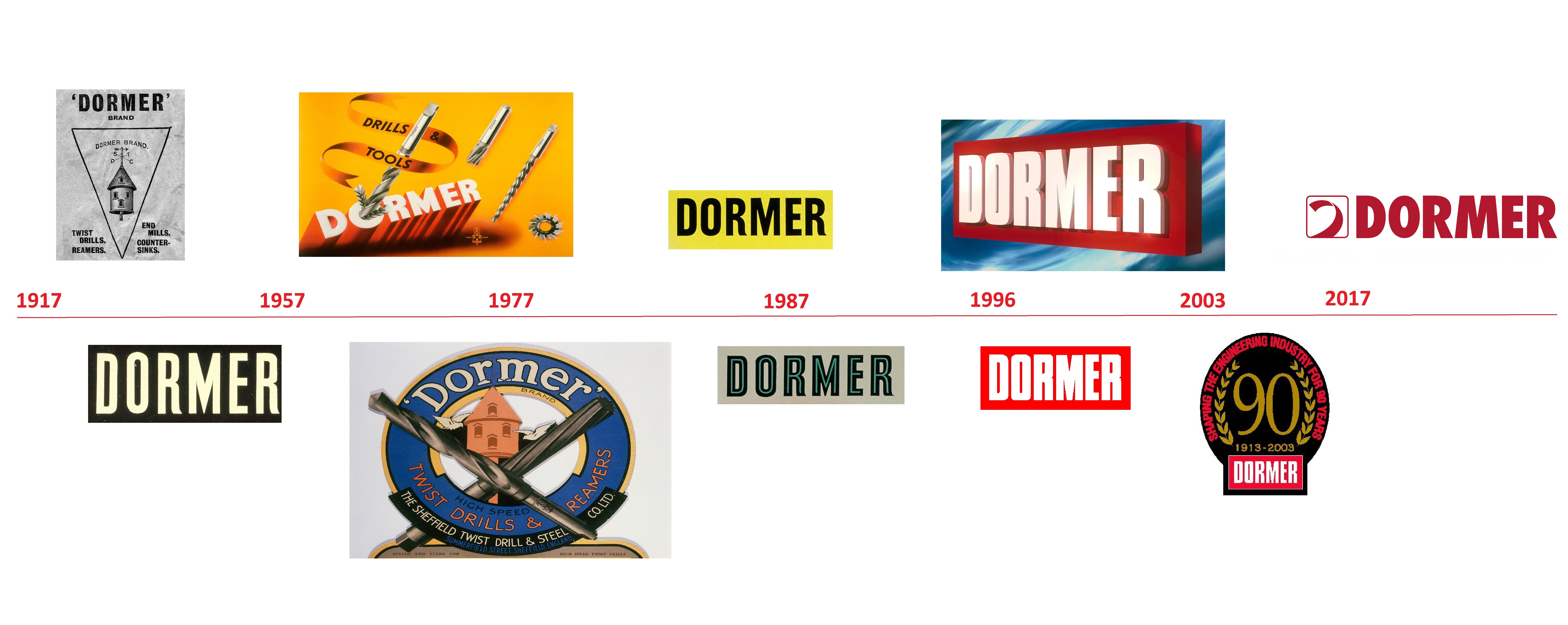 Erstmals zierte ein Logo genau vor hundert Jahren die Schneidwerkzeuge von Dormer. Das bisherige Design hatte sich in dem zurückliegenden Vierteljahrhundert nur unwesentlich verändert, sodass der Werkzeugproduzent den 100. Jahrestag als Meilenstein für ein umfassendes Re-Design nutzen wollte. „Ein neues Dormer-Logo mit dem Spansymbol ist ein starkes Zeichen zu Beginn des nächsten Jahrhunderts“, ist sich der Brand-Manager sicher.