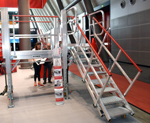 Am Messestand (Halle 3, Stand 3A13) können sich interessierte Fachbesucher einen Überblick über das vielseitige Sortiment an Steigleitern für bauliche Anlagen, Maschinen- und Industrieanlagen, als Fluchtweg oder ortsfester Zugang verschaffen. Wie dabei aus vielen einzelnen Komponenten beispielweise eine individuell angepasste Steigleiter wird, können die Messebesucher an einem PC-Terminal live nachvollziehen: Mittels des intelligenten 3D-Steigleiter-Konfigurators lässt sich am Bildschirm mit wenigen Mausklicks die Basiskonstruktion einer Steigleiter entwerfen. Ein Auswahlmenü bietet darüber weitere Konfigurationsmöglichkeiten an, wie etwa Befestigungen, Plattformen, Einstiege oder ein extra Rückenschutzkorb. Bei Bedarf kann ein passendes System zur persönlichen Schutzausrüstung gegen Absturz ergänzt werden.