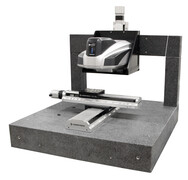 ((BU)) Integration eines externen Keyence Messsystems in Aerotech-Positioniersysteme für noch größere Verfahrwege: Die Experten von Aerotech haben hierfür auf einem stabilen Granitportal eine Z-Achse mit bis zu 300 mm Verstellweg montiert. Der Messkopf wird von einem Adapterwinkel getragen. Für die Bauteil-Justage ist ein Kreuztisch auf einer Granitbasis montiert.