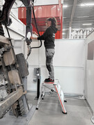 BU: Klapptritte im praktischen Einsatz – Die Modelle 6034 und 6036 bieten sicheren und flexiblen Zugang in verschiedenen Industriebereichen, wie z.B. bei Wartungsarbeiten und Montageaufgaben. Ihre robusten Konstruktionen und benutzerfreundlichen Eigenschaften gewährleisten eine hohe Sicherheit und Effizienz in der täglichen Arbeit.